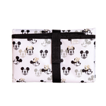 Disney Baby Full Body Changing Pad Mickey Minnie Ivory folded with diaper and wipes in strap