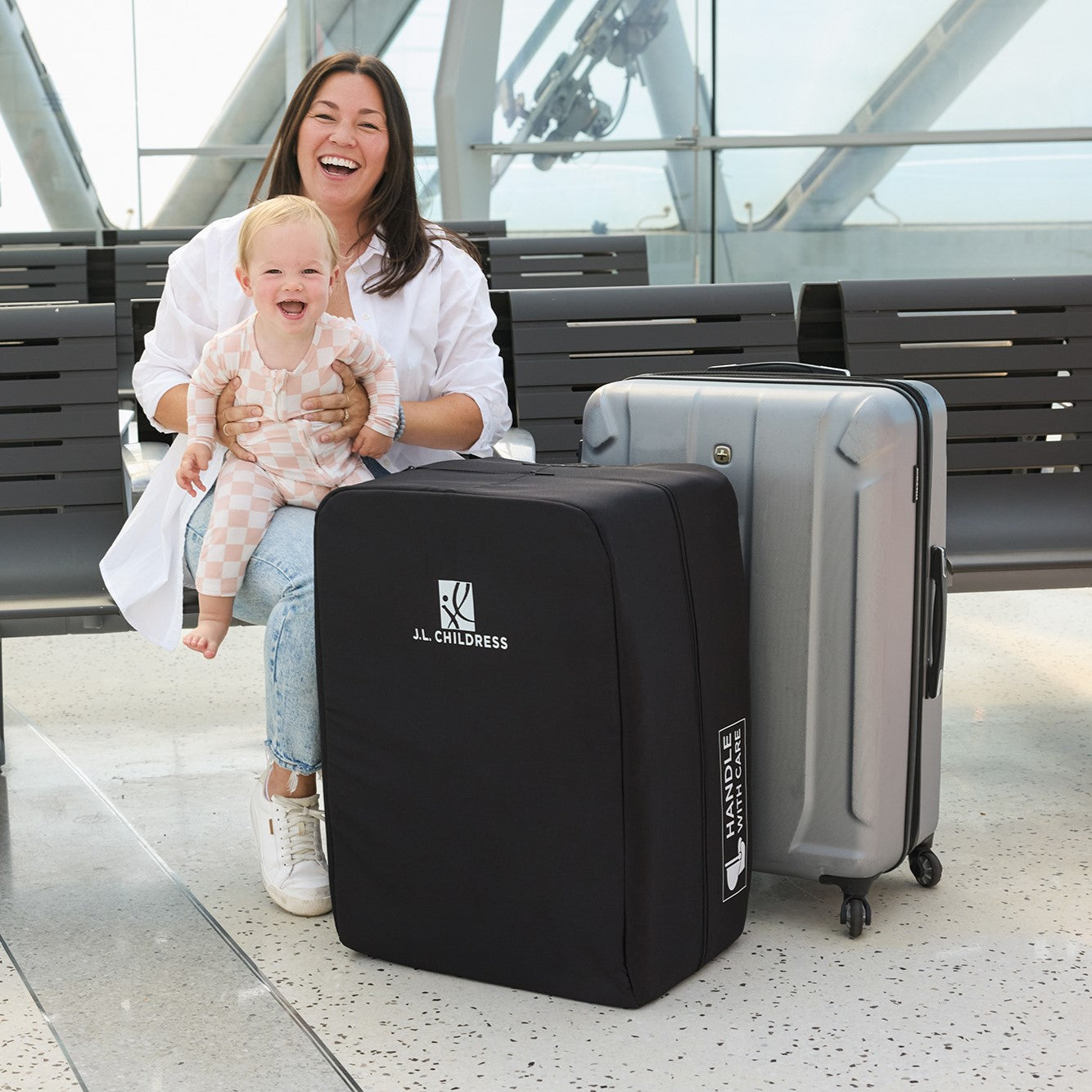 The J.L. Childress Elite Travel Bag is designed for an Infant Car Seat and Stroller Combo, such as the Doona. The Doona, along with it's base, will fit in the Elite Travel Bag. The Elite also fits most other infant car seats and bases, and also fits the Evenflo Shyft Dualride car seat only (without its base). The Elite Travel Bag is made of durable, premium materials and craftsmanship to protect your infant car seat and stroller combo. Padded, adjustable backpack straps ensure comfortable, hands-free carrying. The Elite uniquely attaches to a stroller handlebar with built-in buckle straps to easily transport through the airport. Scratch-resistant material has been added to the bottom of the bag for extra protection. The bright red Gate Check tag can be used if gate checking your gear for added visibility. A discreet silicone AirTag holder is attached to the interior of the bag, allowing you to insert your own AirTag and track your valuable car seat and stroller combo. Backpack straps detach and tuck away during transit to avoid damage. The dual zipper, large opening makes it easy to take your gear in and out of the bag, and can be locked for added security. Use the top carry handle to easily lift your bag and the clear ID pocket and ID card to identify your bag. The Elite Travel Bag is backed by our Lifetime Warranty and U.S. based Customer Service Team. Travel Happy with J.L. Childress!