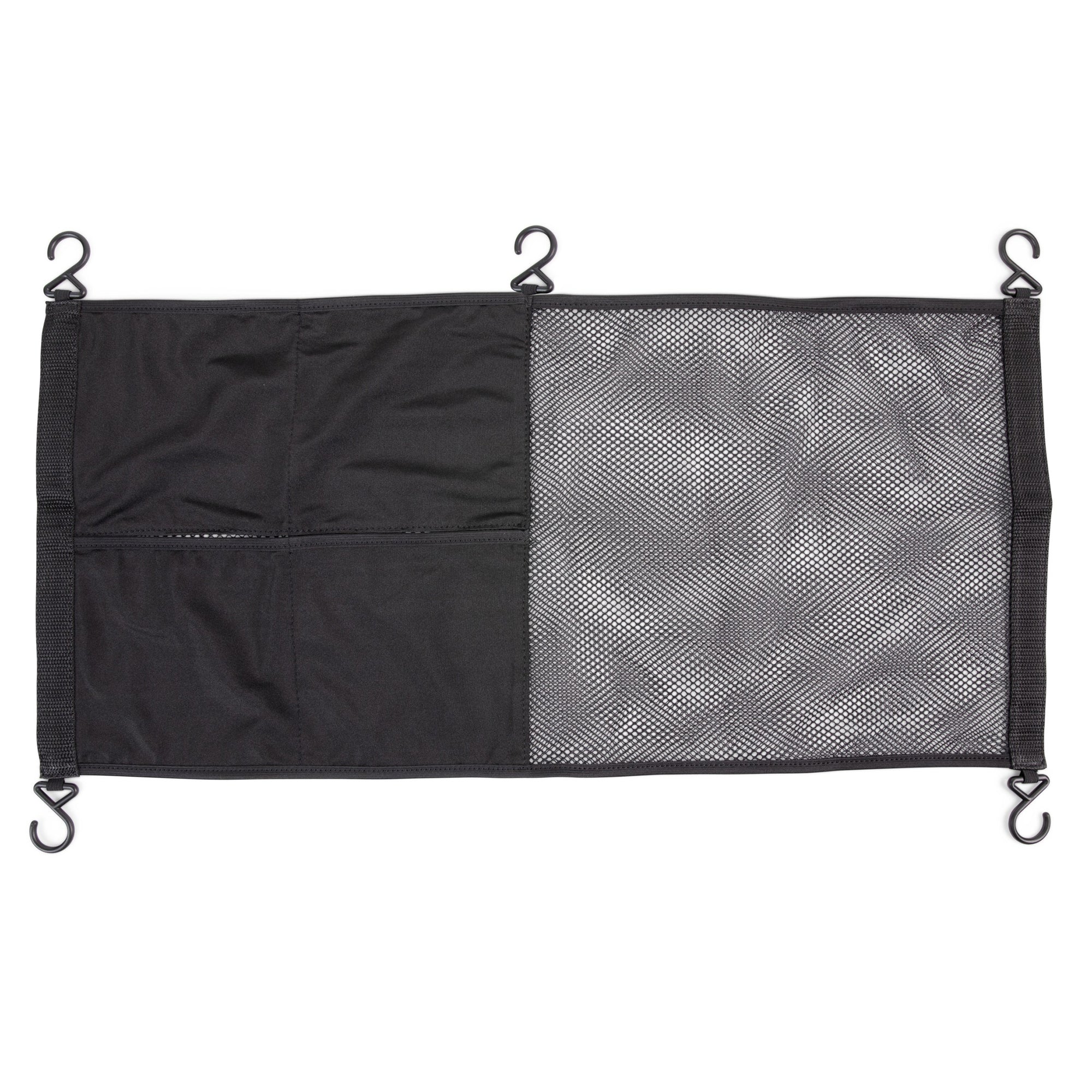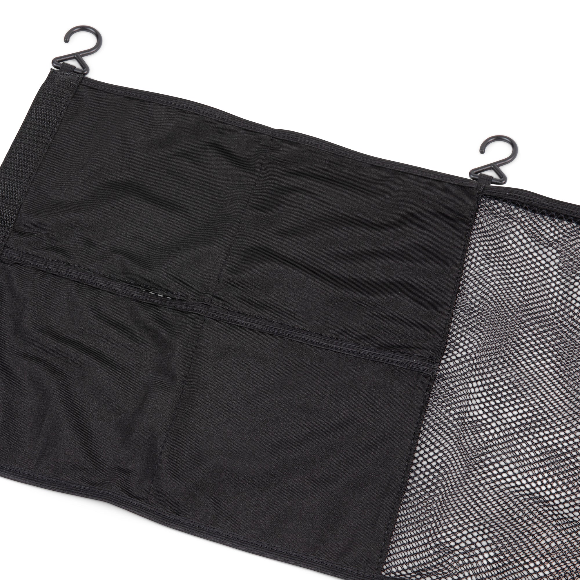 The J.L. Childress Stroller Wagon Netting  adds essential, easy-access storage to all stroller wagons. This large 26"W x 12"H mesh organizer is divided into two storage pockets to hold all your family's on-the-go accessories. The Stroller Wagon Netting stretches to attach to all stroller wagons with five adjustable hooks. The durable, high-quality mesh fabric withstands daily use and the large, elastic openings make it easy to put in and take out snacks, toys and more.
