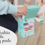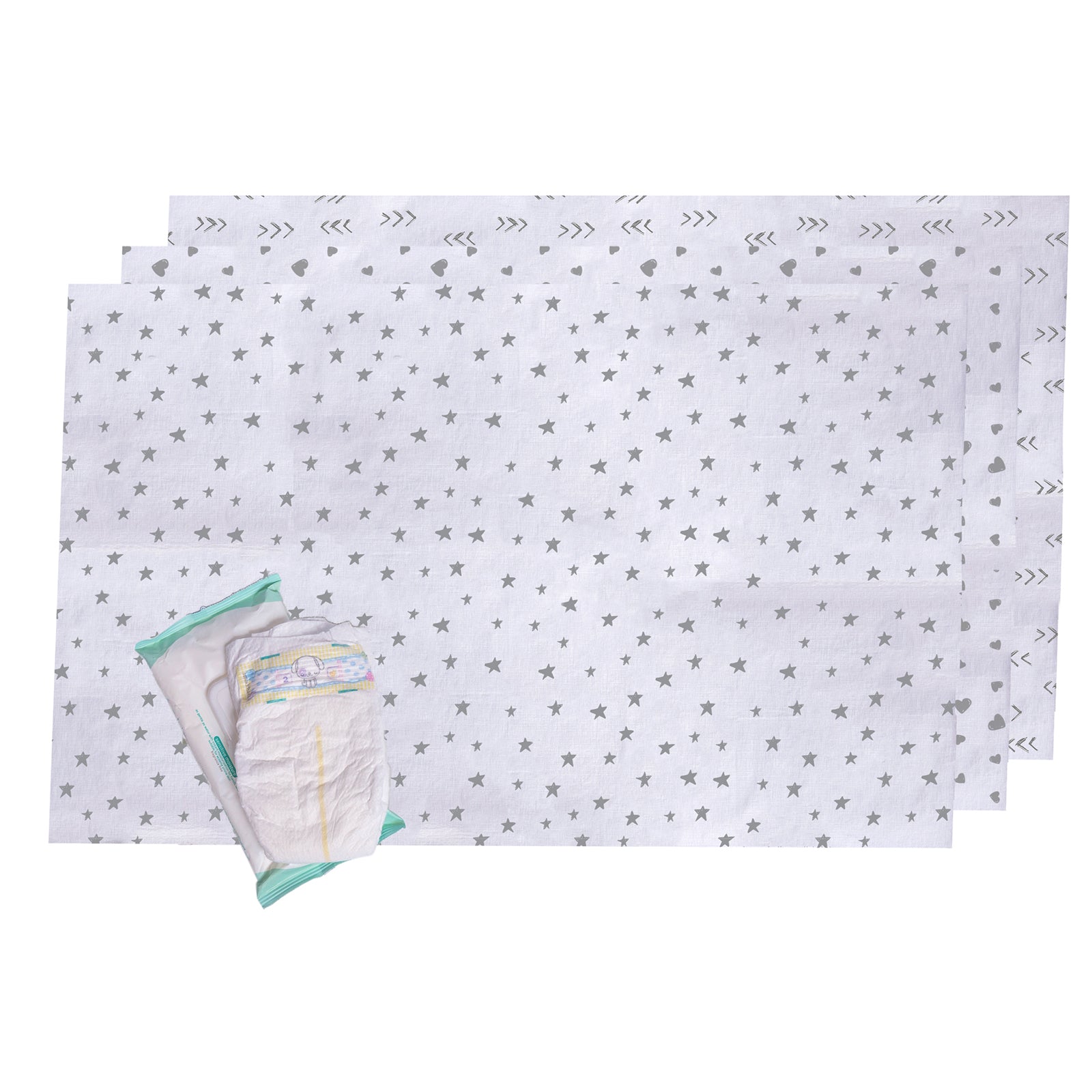 Healthy Habits Disposable Changing Pads provide a clean and comfortable surface for diaper changes wherever you go! Pack includes 24 one-time-use changing pads in three playful patterns. Two absorbent layers of each changing pad provide comfort for baby and a leak-resistant surface. Each changing pad measures 26” x 18” and is perfectly sized for both babies and toddlers. Discard after use – we recommend recycling.