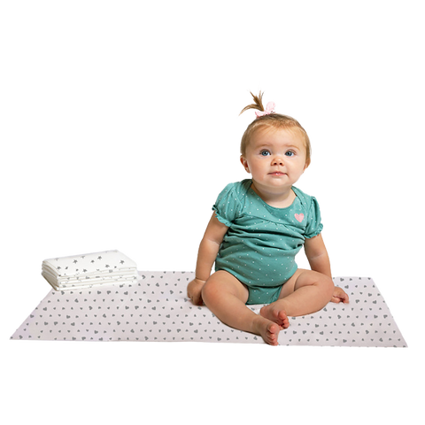 • Warning. As with any paper products, disposable changing pads may burn if exposed to flame. Avoid choking risk form paper. Choking may results from anything babies put into their mouths. Immediately discard if pad has become torn or damaged. Discard in waste receptacle. DO NOT FLUSH. This is not a toy. Never leave child unattended. Discard all packaging components before use.