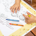 Healthy Habits Disposable ColorMe Placemats provide a clean and entertaining surface for eating and coloring wherever you go! Pack includes 24 one-time-use placemats in three playful designs. Innovative placemat material is tear-resistant and made of 75% recycled materials. Use with both crayons and markers. Each placemat measures 18” x 14” and can be securely attached to a flat table with four adhesive strips on the back. Discard after use - we recommend recycling!