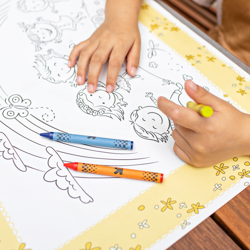A clean and entertaining surface (made of 75% recycled material) for eating and coloring wherever you go!