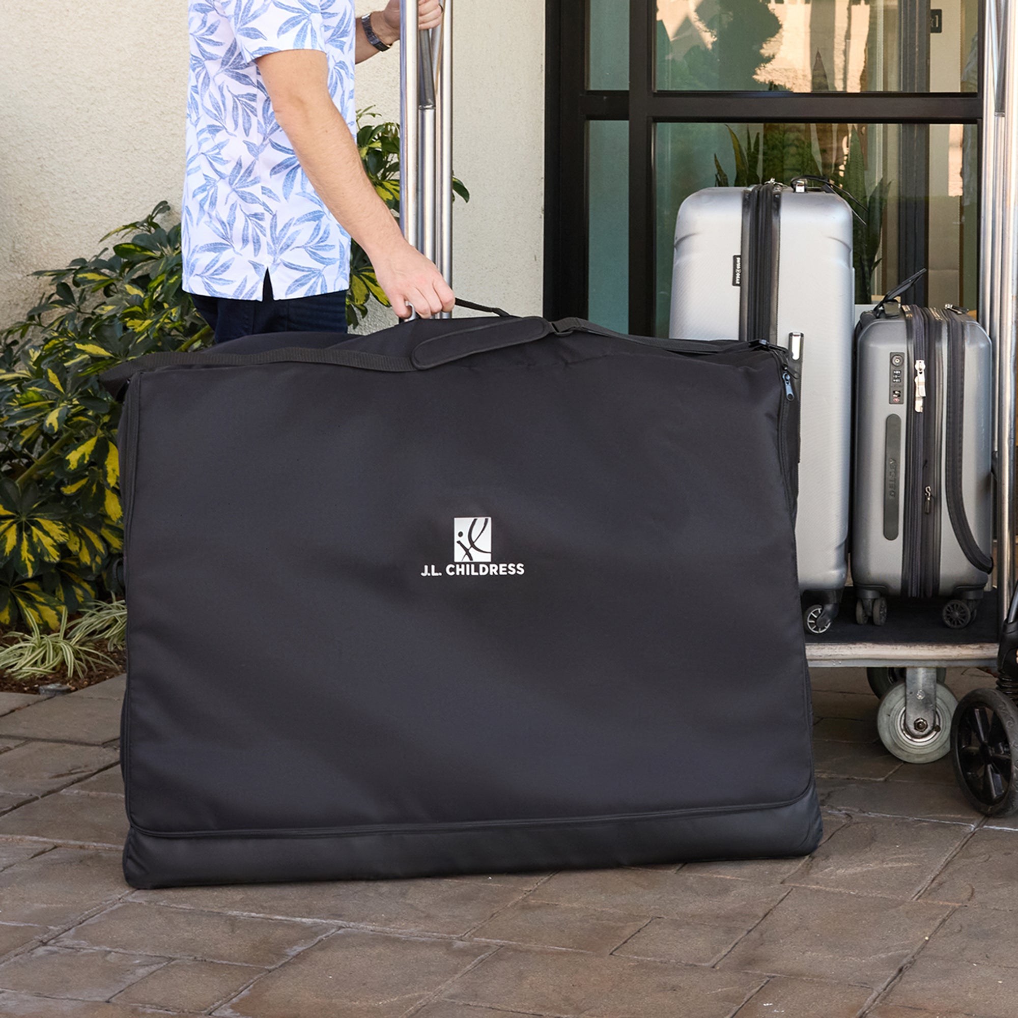 The J.L. Childress Universal Stroller Travel Bag is made of durable, premium materials and craftsmanship to properly protect your stroller. Available in multiple sizes (Small, Medium, Large and Extra-Large), with both Padded and Unpadded options in EACH size. Padded bags feature extra-thick padding built into all sides of the bag. Additional features on all bags include: an adjustable, detachable padded shoulder strap, two sturdy carry & lift handles, scratch-resistant material on the bottom of the bag, a silicone AirTag holder attached to the interior, large, dual-zipper opening, interior storage pocket and clear ID pocket with identification card. Ideal for checking your stroller as luggage, gate checking it or using as a storage bag. The Universal Stroller Travel Bag is backed by our Lifetime Warranty and U.S. based Customer Service Team. Travel Happy with J.L. Childress! Bag Sizing: Small = 30"W x 30"H x 16"D, Medium = 35"W x 30"H x 16"D, Large = 40"W x 30"H x 17"D, Extra-Large = 46"W x 30"H x 14"D and expands to 46"W x 30"H x 20"D to fit even the largest strollers.