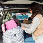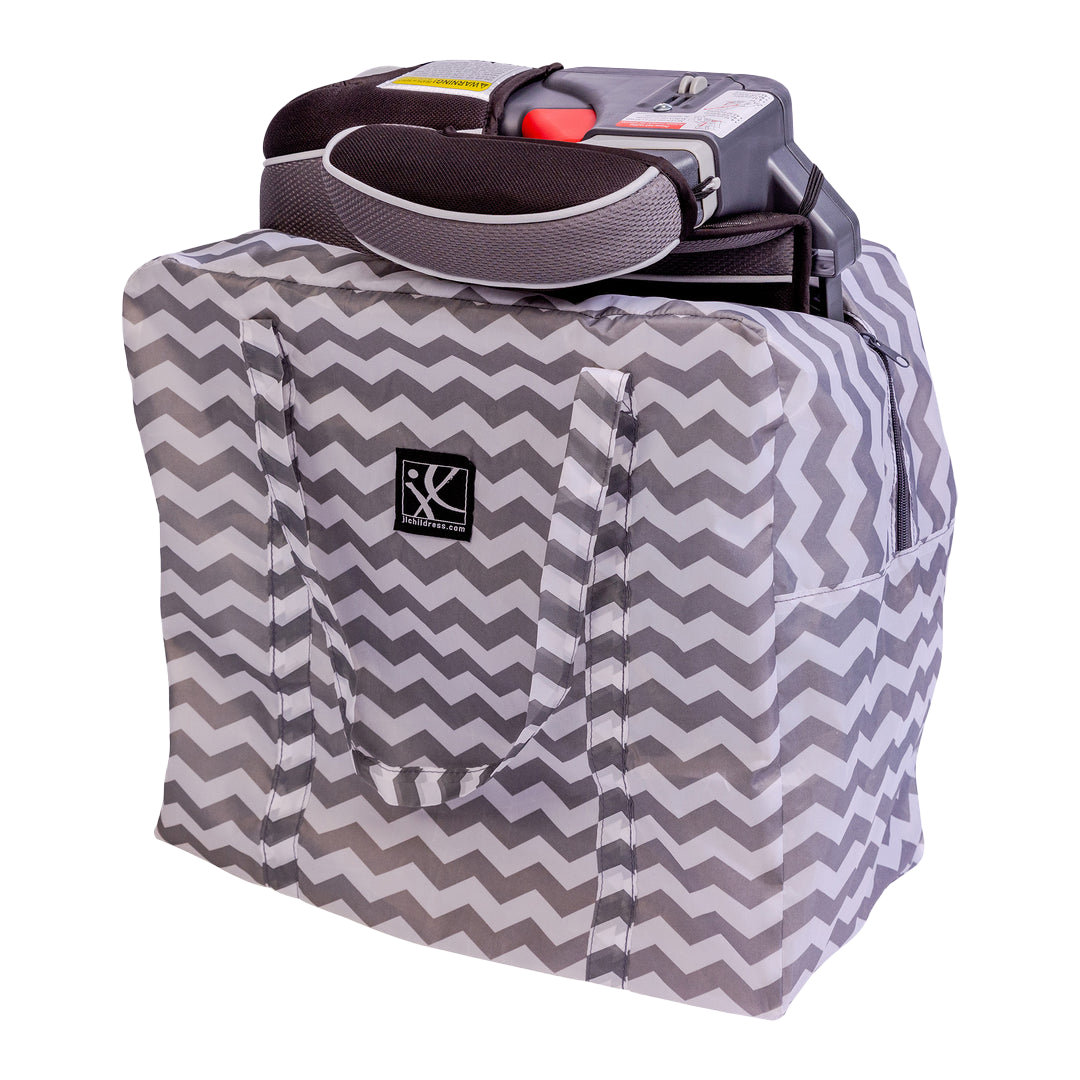 The J.L. Childress Booster Go-Go Travel Bag is a versatile, handy, compact bag that makes protecting and carrying your child’s backless booster car seat, baby seat or booster seat a breeze. The Booster Go-Go Travel Bag features a unique back panel that securely attaches around your favorite luggage handles. Extra-long shoulder straps, easy-to-clean material and an adorable chevron pattern make this bag functional and fun. Bonus: Use the bag for groceries, beach days, weekend trips and more!